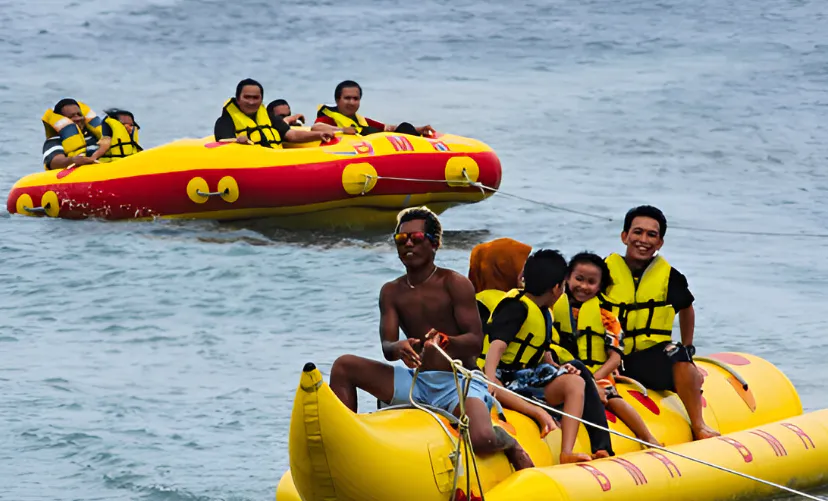 Perairannya tenang sehingga cocok untuk bermain Banana Boat atau mencoba Seawalker dengan pengawasan instruktur profesional.